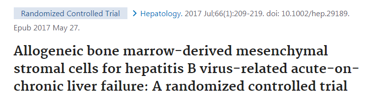发表于《Hepatology》杂志上的一项临床试验结果证实了间充质干细胞治疗慢加急性肝衰竭的安全性和有效性。这是一项开放的,非盲随机对照研究,由国内研究团队完成。